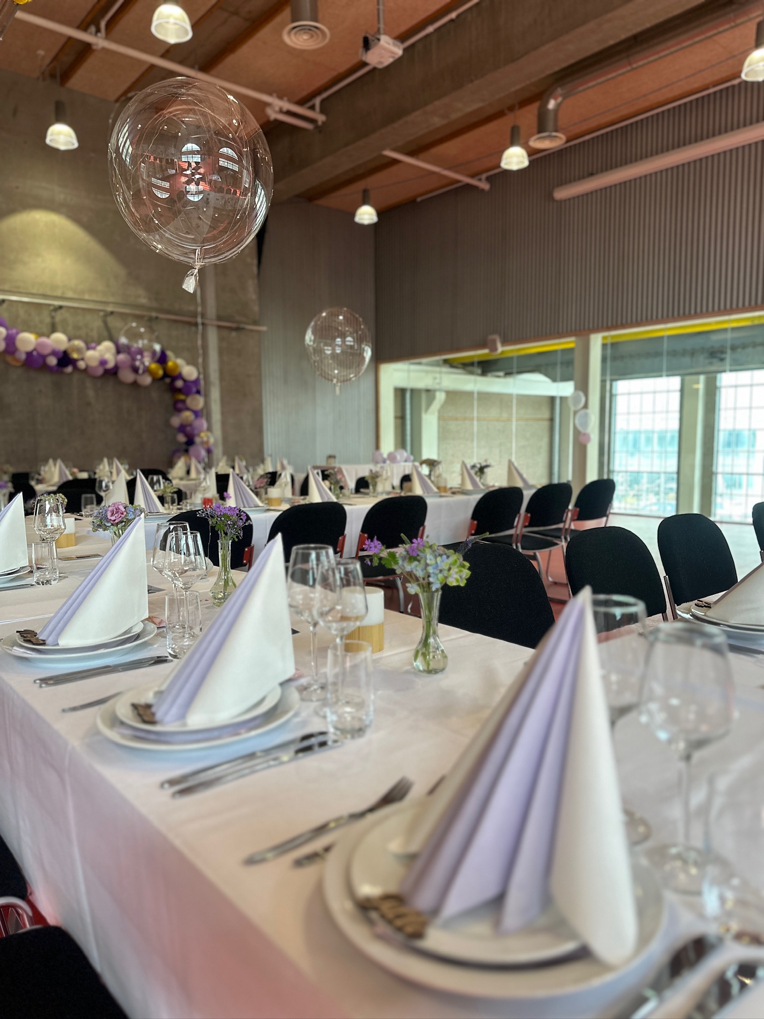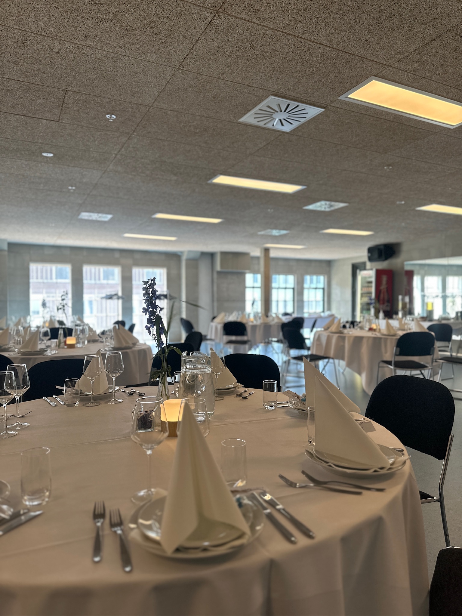 Vi dækker op med service, hvide duge, LED lys, hvide servietter. Har I anden pynt, bordkort til konfirmation osv. er dette altid velkommen, så det passer ind i jeres tema. Dette skal dog aftales med jeres kontaktperson.