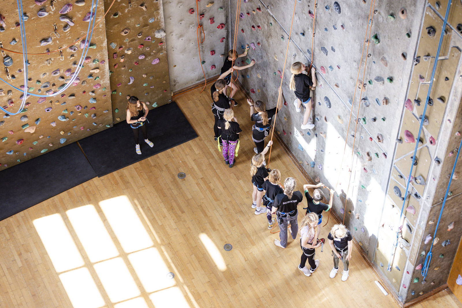 Denne camp fokuserer på klatring: sikkerhed, sikringsteknikker, greb-forståelse og bouldering på klatrevæggen hos DGI-Huset 16 m. høje klatrevæg.