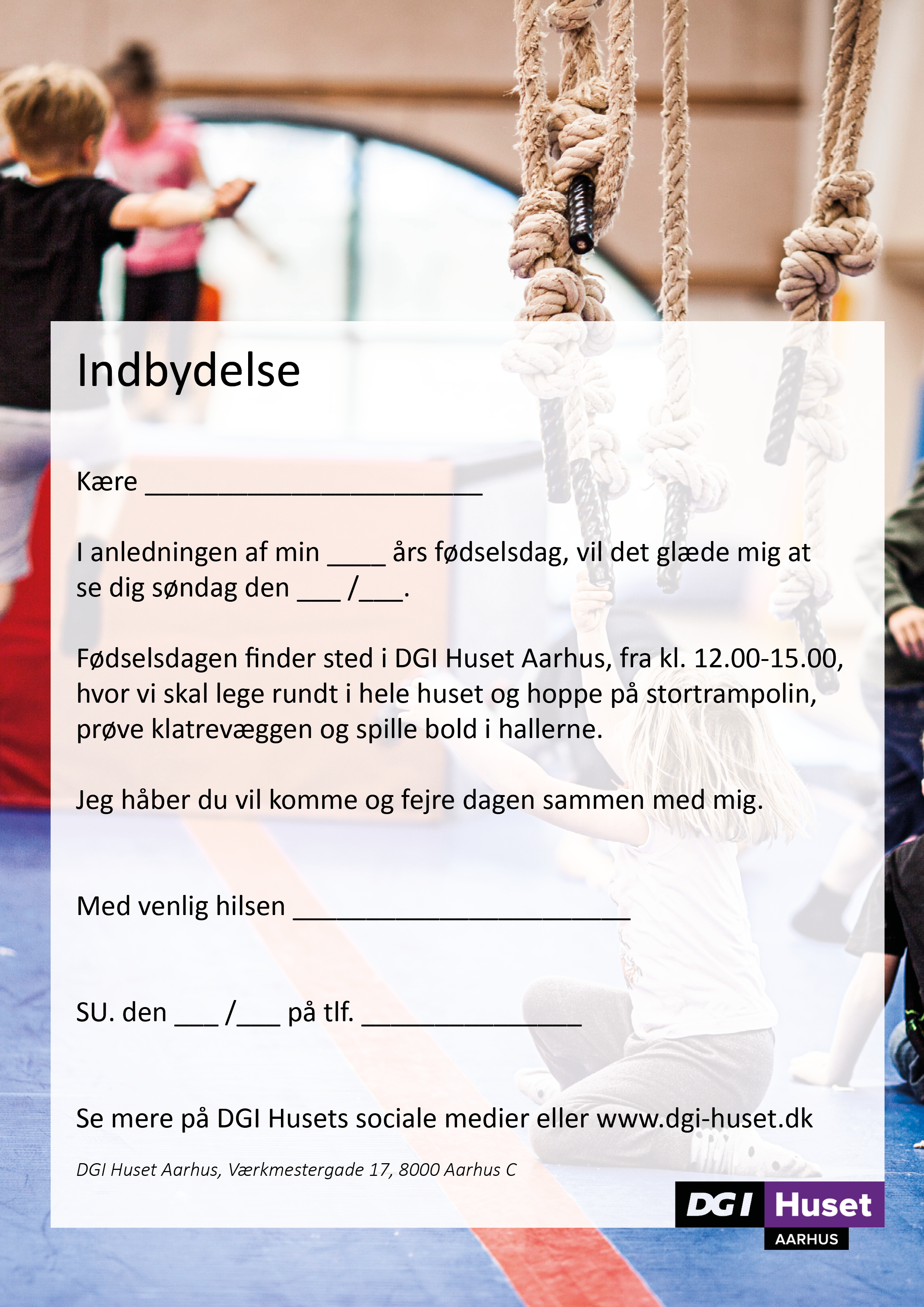 Her kan du finde en PDF invitation til fødselsdag, som nemt kan sendes rundt til gæsterne før fødselsdagen. Invitationen indeholder forskellige oplysninger, så man kan orientere sig. I PDF’en fremgår blandt andet tidspunkt, adresse, ledige dato felter, og eventuelle praktiske informationer.